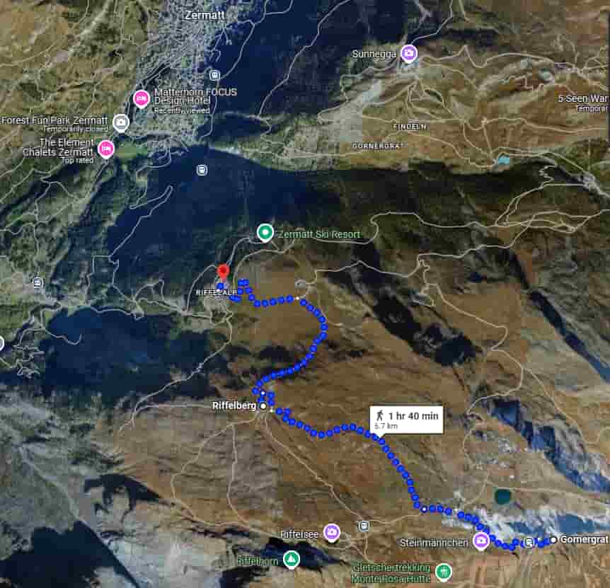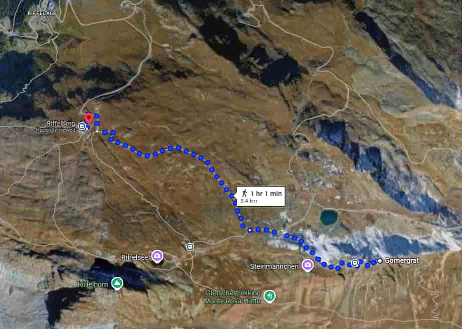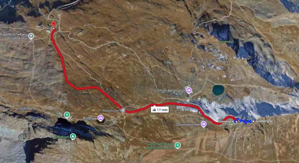 Incorporating a hike into your visit to Gornergrat is highly recommended, especially if you’re keen on experiencing the alpine landscapes up close. One popular option is to hike downhill from the Gornergrat summit to Riffelberg, passing by the picturesque Riffelsee lake. Recommended hike : Gornergrat to Riffelberg via Riffelsee. Starting Point: Gornergrat Summit (3,100 m). Ending Point: Riffelberg Station (2,600 m). Distance: Approximately 4–5 km. Duration: 1.5 to 2.5 hours, depending on pace and photo stops. Elevation Change: Descent of about 500–560 m. Difficulty: Moderate; suitable for hikers with average fitness levels. Riffelsee Lake: A serene alpine lake offering stunning reflections of the Matterhorn on calm days. Continuous vistas of the Matterhorn and surrounding peaks throughout the hike. Opportunity to observe alpine meadows and possibly spot wildlife like marmots.