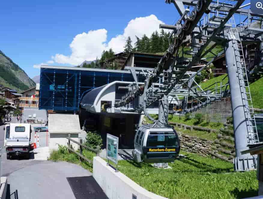 Since Zermatt is a car-free village, visitors must park their vehicles in Täsch and take the shuttle train operated by the Matterhorn Gotthard Bahn. Use the Matterhorn Terminal Täsch, which offers 2,100 covered parking spaces and amenities like restrooms, lockers, a bistro, and a grocery shop. Shuttle trains depart every 20 minutes from 05:55 to 21:55, with hourly services until 00:30/01:00. On weekends, trains run all night. The train ride from Täsch to Zermatt takes approximately 12 minutes. Upon arriving at Zermatt railway station, proceed to the Matterhorn Express valley station to board the gondola. The valley station is located on Schluhmattstrasse, about a 20-minute walk from the Zermatt train station. Electric taxis and e-buses are available in Zermatt for quicker transit. The newly renovated valley station offers barrier-free access, ticket counters, ski lockers, restrooms, and real-time lift status displays .