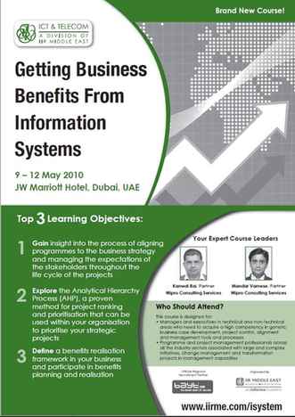 This course was designed for IT managers and business executives, for them to acquire competencies for business case development, business-IT alignment and project management for large and complex